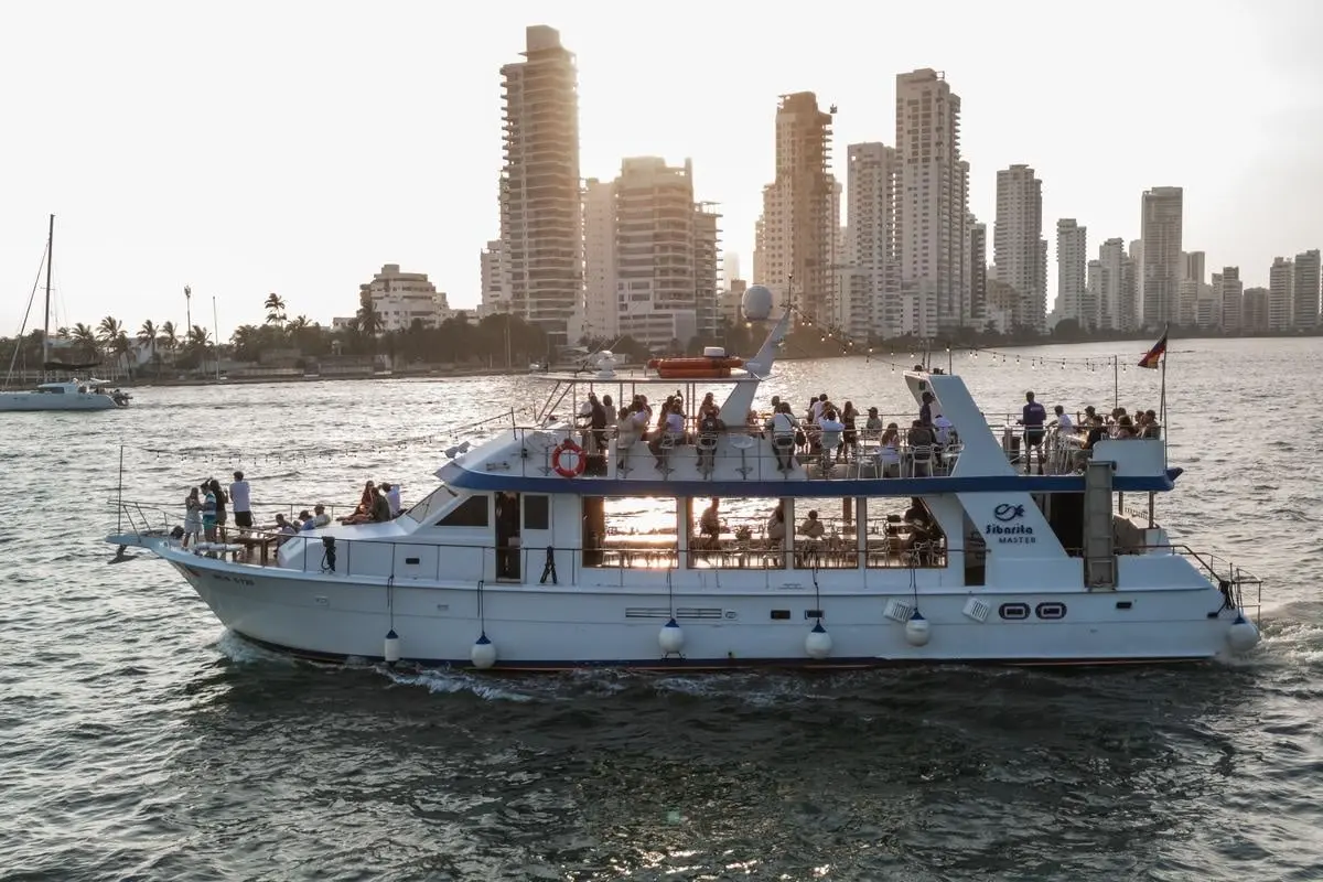 Disfrutar del atardecer en la Bahía de Cartagena de Indias es una de las experiencias más fascinantes y memorables que el viajero puede vivir en esta ciudad llena de historia, encanto y modernidad. A bordo de nuestro lujoso barco Sibarita Master, ofrecemos una travesía incomparable donde el cielo se pinta de tonos dorados, rosados y anaranjados, mientras los rascacielos se iluminan dando paso a la magia nocturna de Cartagena.