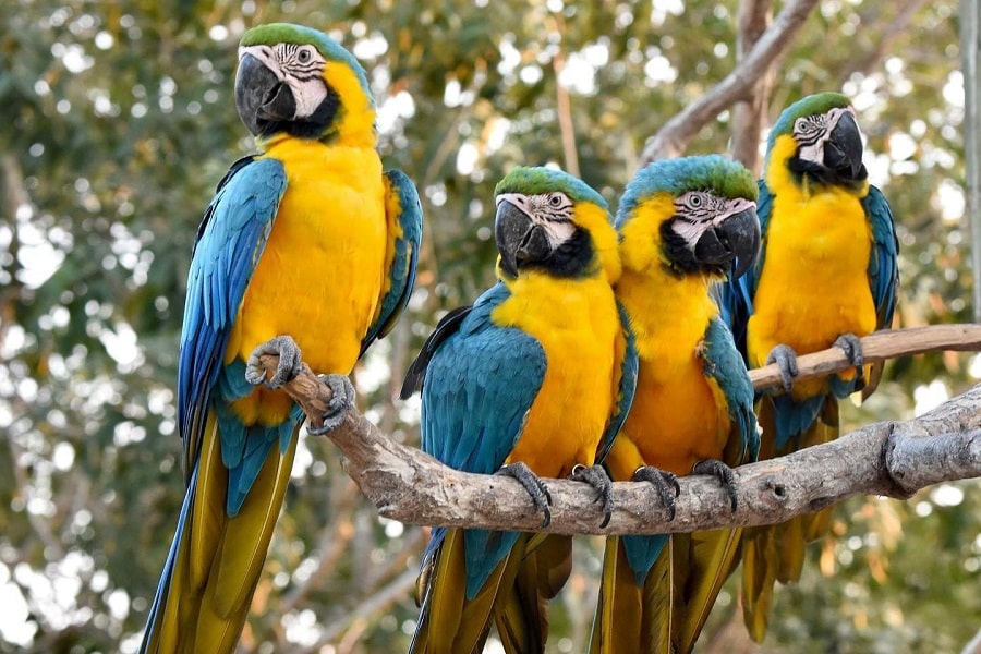 Hábitat de aves coloridas, tucanes, guacamayas y especies exóticas.