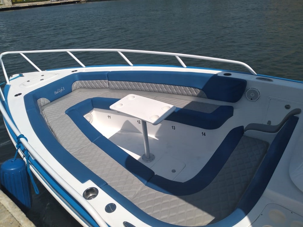 La Real Life I es una lancha deportiva moderna, potente y cómoda, perfecta para grupos que buscan disfrutar del mar con espacio, estilo y seguridad.